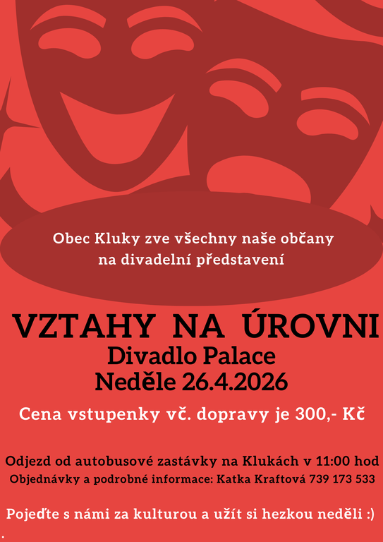 26.4.2026. Odjezd v 11:00 hod. od autobusové zastávky na Klukách. Cena vč. dopravy 300,- Kč